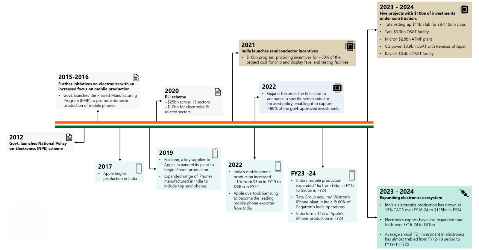 • Attracted firms like Micron, Tata Electronics, PSMC, CG Power, Kaynes